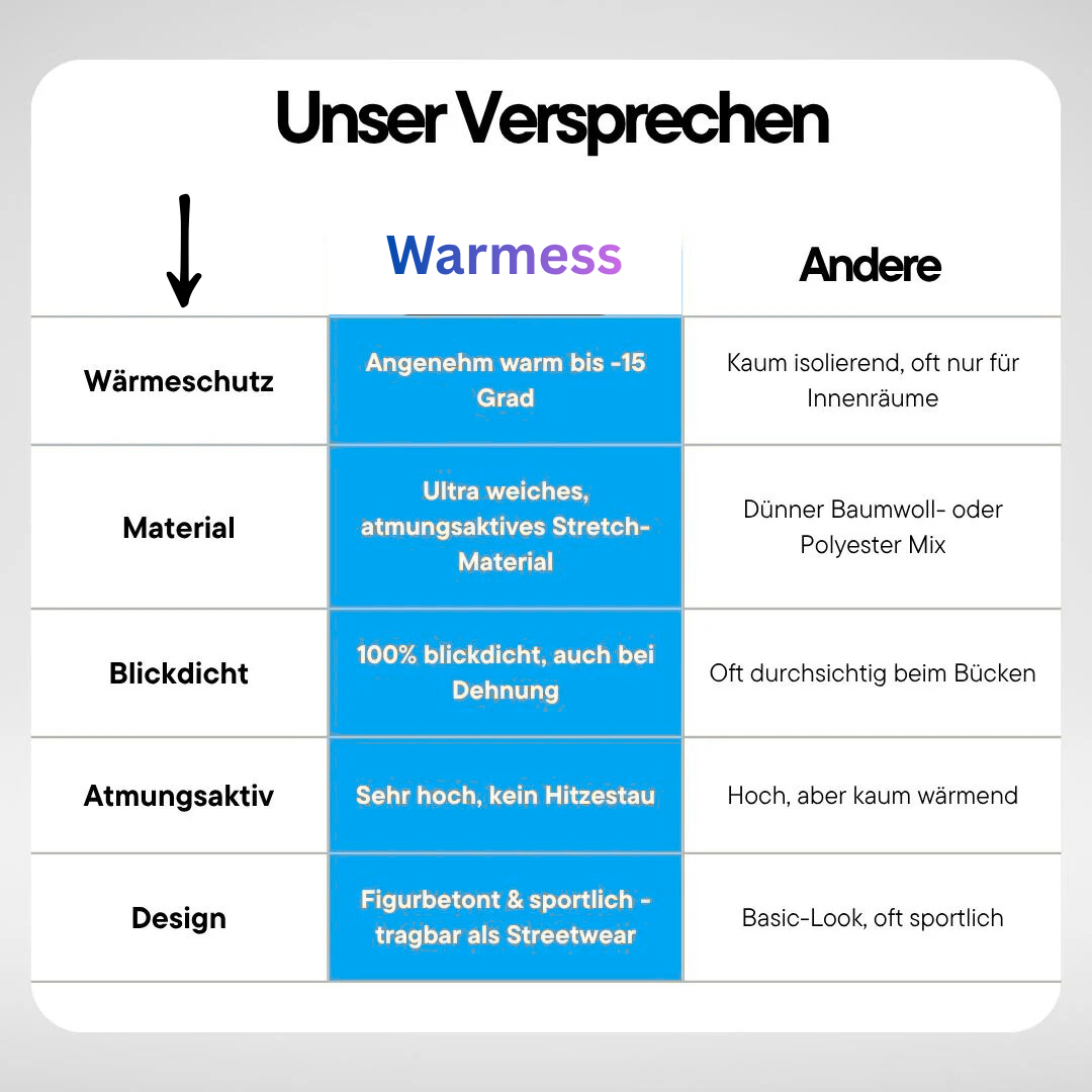 Zieh die Warmess Leggings an und spüre sofort das weiche, anschmiegsame Innenfutter – wie eine warme Umarmung.
